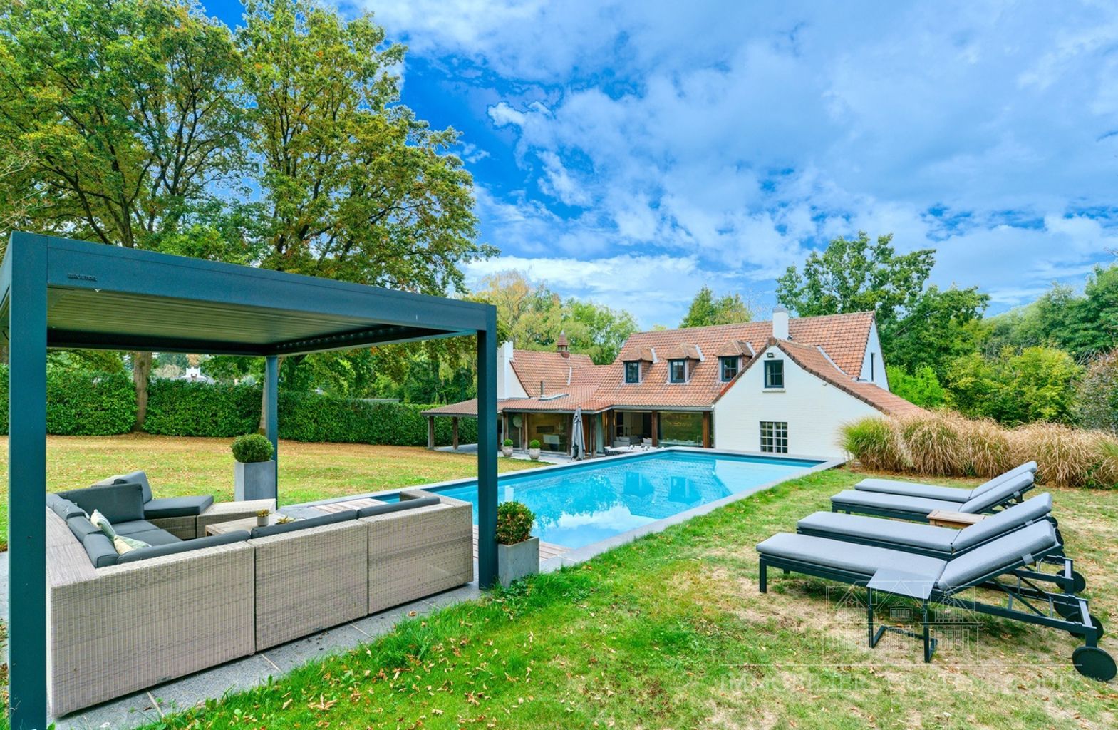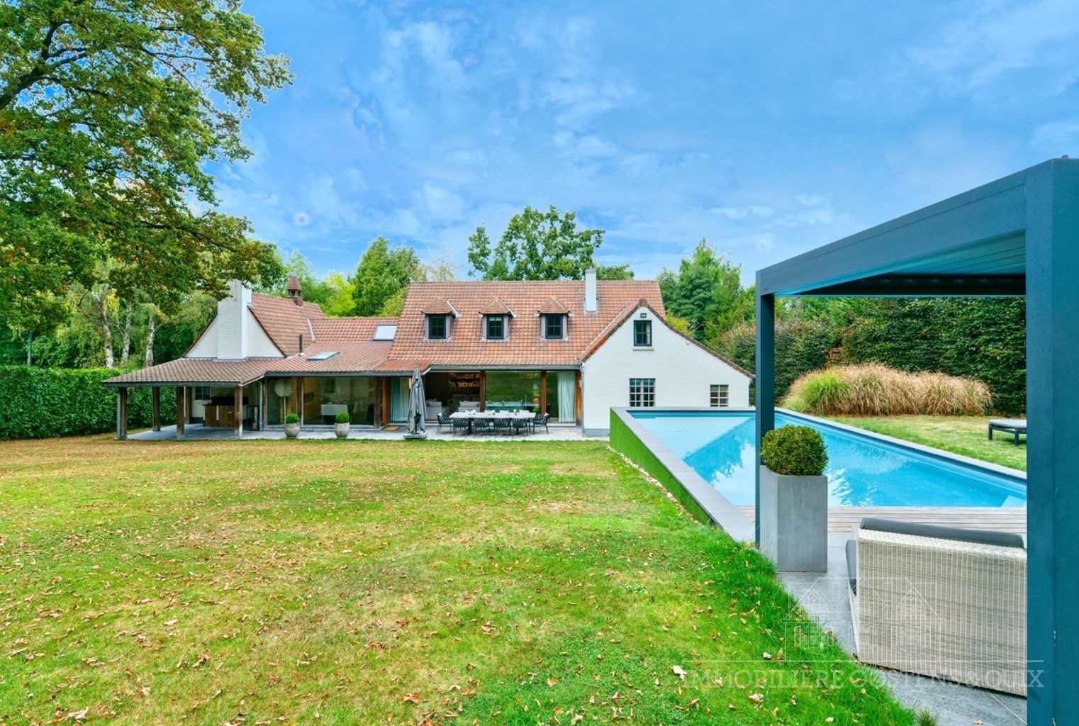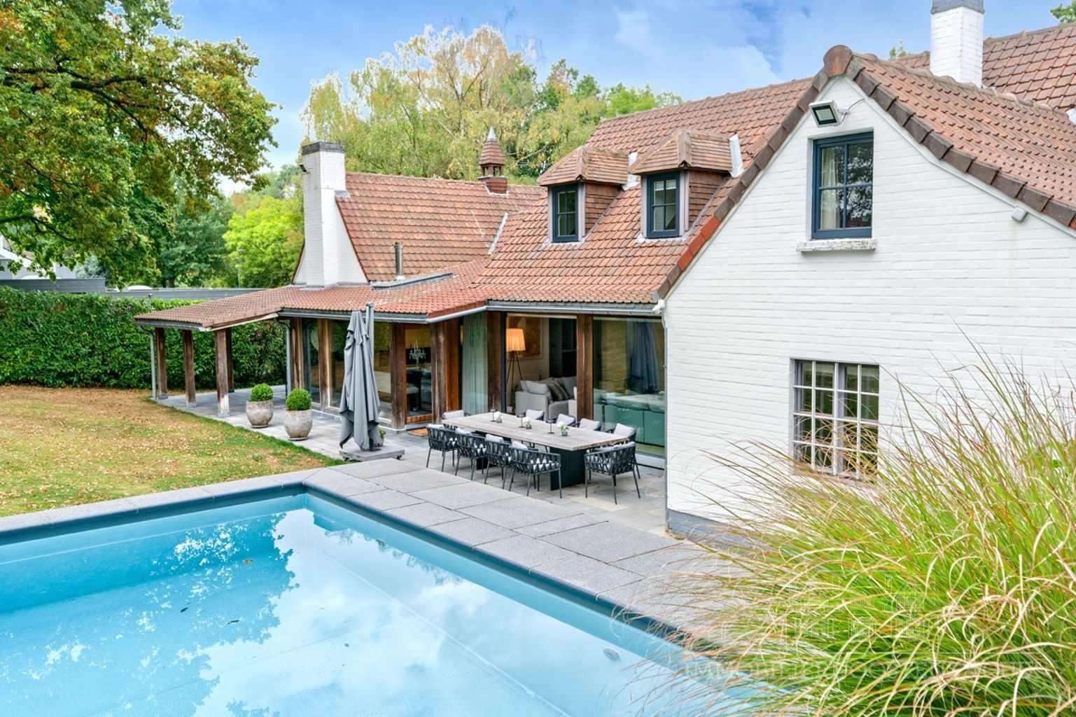 Dans un cadre bucolique proche du rond point Saint-Anne, élégante villa de charme rénovée avec goût et sise sur un magnifique terrain de 19,96 ares joliment arboré et agrémenté d'une piscine. La villa offre: une belle entrée, un Salon avec feu ouvert et baies vitrées donnant sur le jardin, une salle-à-manger avec accès et vue sur le jardin, une cuisine hyper équipée avec coin à déjeuner, 2 suites au rez-de-chaussée avec chacune leur dressing et leur salle d'eau privative, un bureau. A l'étage: 2 chambres avec dressing, 1 sdb et un salon tv (possibilité chambre). Au sous-sols: garages pour 4 voitures, une cave de rangement et un cellier. Cette superbe villa vous séduira par sa situation, ses finitions actuelles tout en respectant le charme de la maison, ses espaces et son jardin calme et joliment aménagé. .